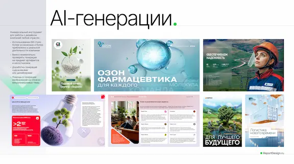 AI-генерации. Это то, что будет с нами идти рука об руку очень долгое время. Мы практически не видим в отчетах «новых миров и галактик», которые встречались в прошлых сезонах. Использование генераций стало более осознанным и приближенным к реальной деятельности компании. Что важно знать клиентам и помнить подрядчикам — искусственный интеллект не может без человека. Все генерации, будь то изображение или текст, должны проходить верификацию и доработку человеком на предмет ошибок и несостыковок. Генеративные модели стали умнее, но все еще не могут жить в отрыве от человеческого разума.